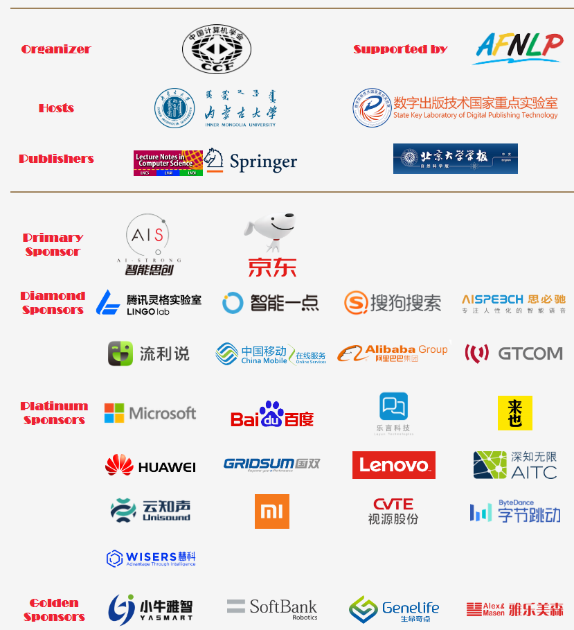 2018NLPCC大会赞助商列表